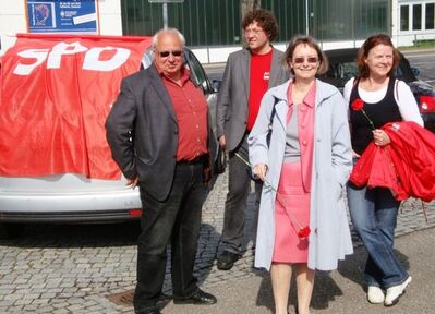 Kreisvorsitzender Werner Müller, Europaabgeordnete Evelyne Gebhardt, Michael Wanner, Vorsitzender der SPD-Schw. Hall, Annette Sawade